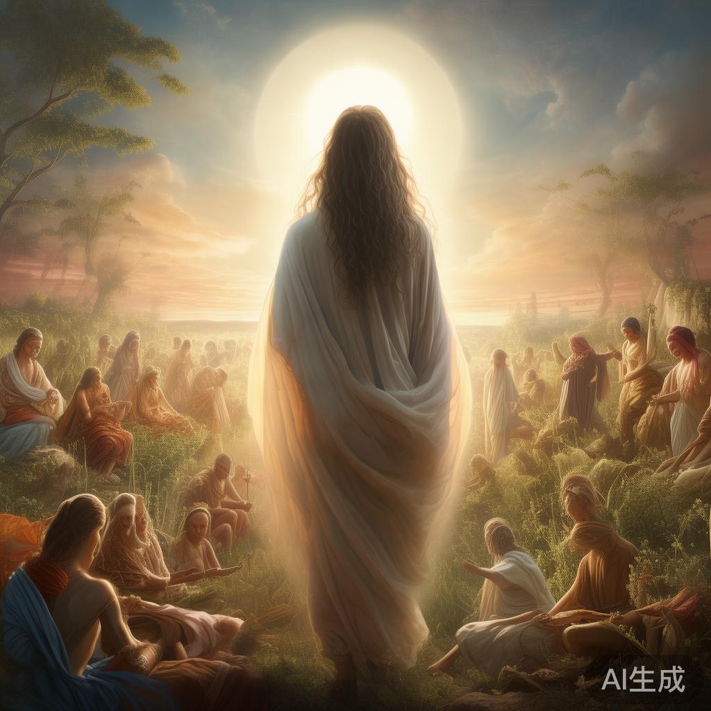 门外一声轻敲,我的小心脏加速跳动,竟然是上帝亲自来了!亚当一脸虔诚地打开门,我能看见他的眼神中闪烁着既荣耀又忐忑的光芒。一进门,上帝就看到我们整齐、乖巧的漂亮孩子们,顿时面带微笑给了他们各种祝福。这一刻,整个空间仿佛都被欢快的气氛浸透。他说这些孩子将来会成为国王、骑士等等,唉,其实我内心还有种莫名的嫉妒,觉得注意力全在他们身上,忽略了其他的。