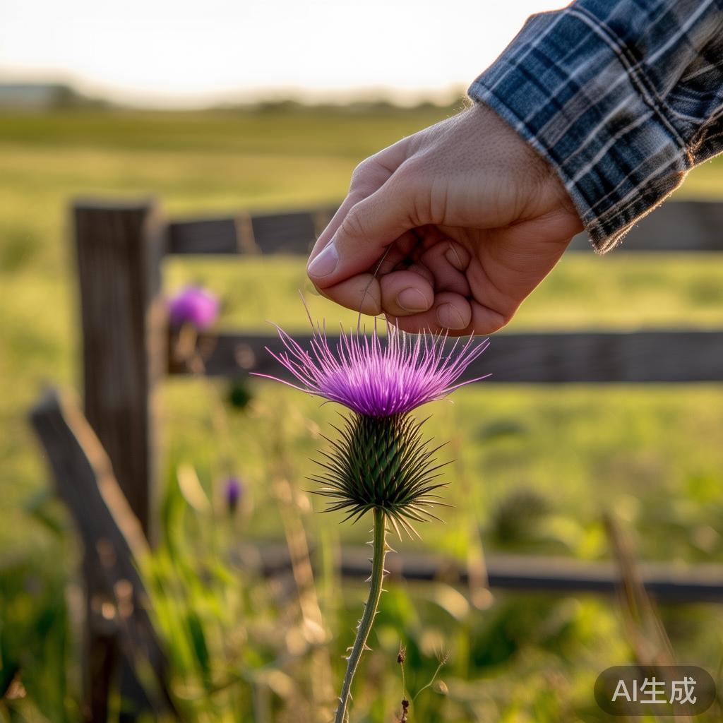 “它美极了!”妻子温柔说道。于是,他们跨越篱笆,连同那朵蓟花的花萼都带了回来,花萼刺破了他的手指,那一刻是属于他们爱情的象征。