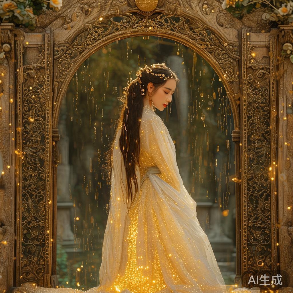 霍勒大妈听后欣然同意,还表示亲自送她上去。在一道大门面前,姑娘刚站进去,一阵金雨洒落在她身上,所有的金子都粘附在她的衣服上。老太太微笑着说:“这是你的劳动成果。”然后便将她掉入井里的纺锤还给了她。
