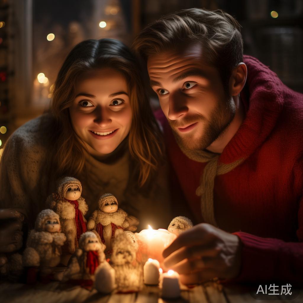 圣诞节前夕的一晚,他对妻子提议:“我们今晚熬个通宵,看看那些神秘的小人儿究竟是谁,好不好?”他的妻子简直太高兴了,立刻点燃一根蜡烛。他们两个人就悄咪咪地躲在角落里,静静观察着周围的动静。